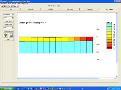 The measured values and the array geometry can be loaded as ABEM, Syscal, SAS1000, PASI, Astier or Geotrade files or entered conveniently in a spreadsheet. The electric model with up to 20 layers can be proposed by the user or calculated automatically starting from the measured values (inverse modelling). In both cases, the software allows automatic adjustment (least squares) of the model. During adjustment, it is possible to freeze any of the resistivities and thicknesses, for example for the calibration on a nearby mechanical survey. In case of manual entering of the field data, the program generates automatically and progressively a corresponding electric model. This may help to stop the data acquisition on the field, as the sounding reaches the aimed layer. The program allows also bulk processing of several soundings from a simple text file.